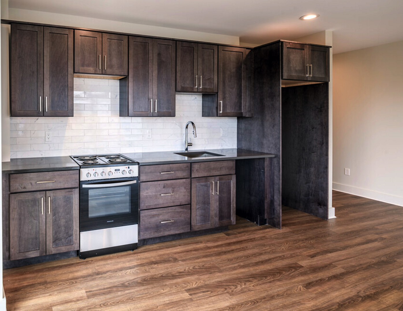 Each apartment has a stand-alone Energy Recovery Ventilator (ERV) system. The ERV replaces stale air, moisture, and indoor pollutants, while bringing in fresh, clean, tempered air from outside into the home. During the warmer seasons, the system pre-cools and dehumidifies while humidifying and pre-heating in the cooler seasons. This technology is an effective means of reducing energy cost and heating and cooling loads.