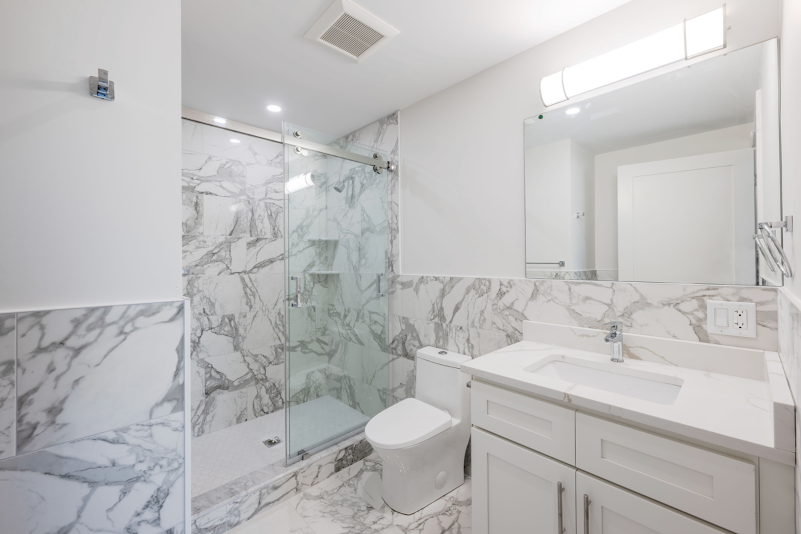 Large and beautifully designed tiled bathrooms w/ large walk in showers & glass doors.